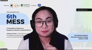 Opening Speech from onsite by Dr. Pratikshya Bhandari, The Director, International Affairs, Shinawatra University, Thailand and followed by the Global Research Ecosystem Introduction by Associate Professor. Dr. Hendrati Dwi Mulyaningsih as the Conference Chair of 6th MESS, Founder and Chief Executive Officer of Research Synergy Foundation.